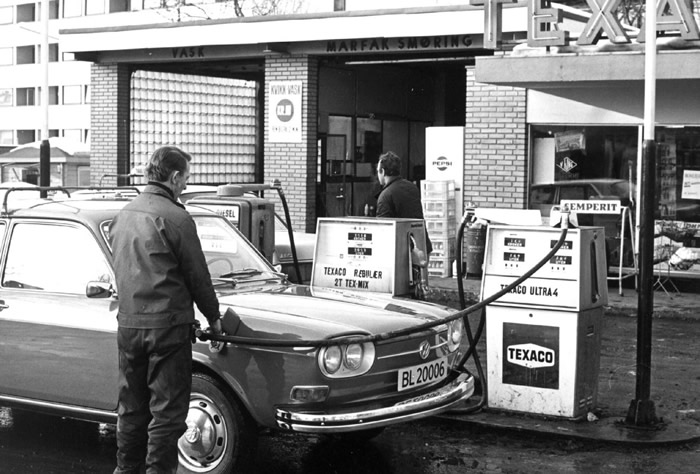 På området lå en bensinstasjon som med tiden fikk ulike navn. Texaco markedsførte fra 1947 sine produkter i Norge under et eget selskap som het Caltex. Caltexstasjonen ved Fastvoldgården åpnet i 1963. I 1968 ble navnet endret til Texaco. Vi ser begge navn på bildene ovenfor. Stasjonen ble stengt midlertidig under byggingen av Fastvoldgården, men åpnet igjen under navnet Texaco − Bekkestua Trafikksenter i 1988. I 1999 ble stasjonen omgjort til en automatstasjon under navnet Uno-X som er Hydro − Texacos automatstasjonkonsept.