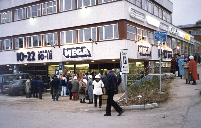Forretningsgården ble revet i 1986 da man etablerte ny bygning i Gamle Ringeriksvei 41 med Mega, som ble åpnet i 1987. Forretningen ble Coop Mega i 2001. Kart: Se startsiden (nederste kart)