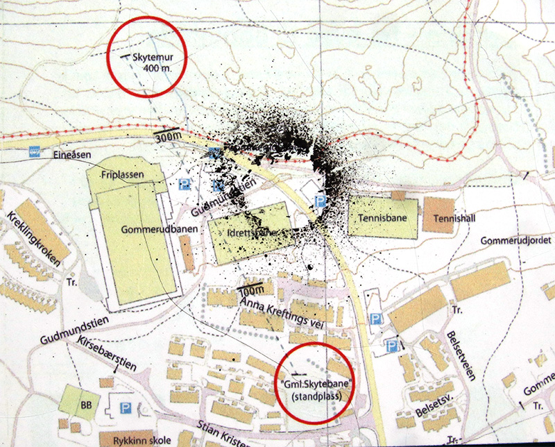 De skjøt nordover mot Eineåsen, og skivene (blinkene) som lå lengst unna, lå rett øst for der Unicare Fram ligger i dag (2020). Se kart og bilder ovenfor.