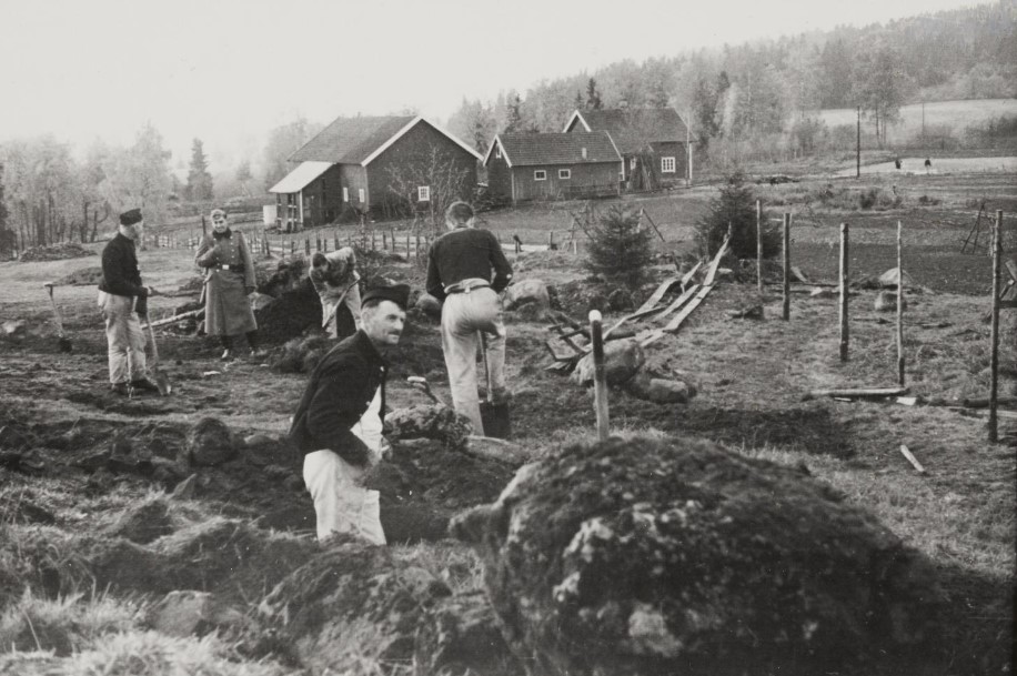 Fra jordrydningsarbeidet på Nedre gård (Nordli). Der ble det gravet og gravet, men hensikten og nytten kunne ofte være vanskelig å oppdage. Kilde: Nasjonalbiblioteket