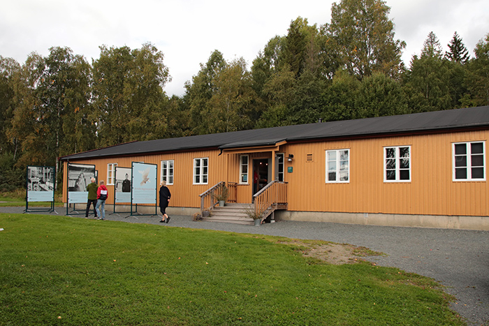 50-årsdagen for overfallet på Norge 9. april 1940. Museet overtok blant annet modelldukkene av to grinifanger og en figur som forestilte fangevokteren Kuntze. Den nye museumsbygningen, den gule bygningen vi ser på bildet, er en gammel brakke fra Grini fangeleir, som i en periode har stått på Kadettangen.