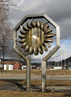Til høyre: Skovlhjulet ved Brynsveien er et symbol på energioverføring. Dette er en skulptur laget av kunstneren Sverre Hoel.