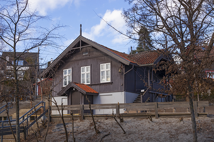 Det er en bygning det gjenstår å fortelle litt mere om. Det er det gamle uthuset, som ble utvidet og innredet med bryggerhus og bad omkring 1916. Senere ble det Skolemuseum.