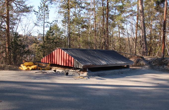 600–700 kvadratmeter. Se bildet ovenfor av inngangen. Se også detaljkart. Fra 1950-tallet hold sivilforsvarets sentralkommando til her. Her var de beskyttet mot angrep. Men trusselbildet endret seg, og etter hvert var det ikke behov for et slikt anlegg. I 2021 var inngangen gjenmurt.