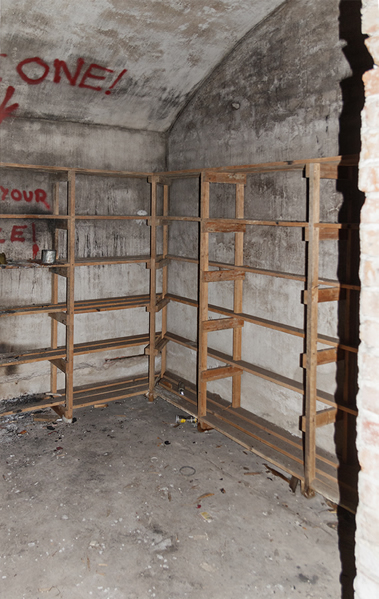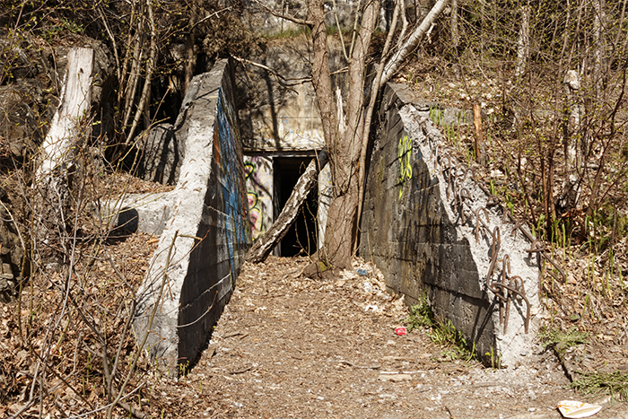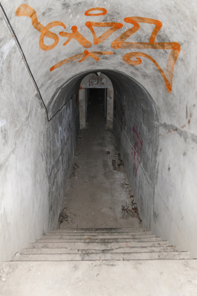 Tunnelen hadde en nordvestlig inngang som nå er gjenmurt. Se de nederste bildene og