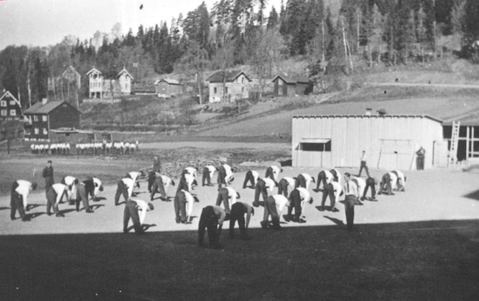 Deler av skolen ble brukt som forlegning av Arbeidstjenesten (AT) fra 1942. Se omtale av AT nedenfor. Gymnaset fikk beholde etasjen med spesialrom.