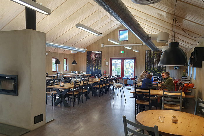 I den nye låven er det kafé. I låven arrangeres det også quizkvelder, selskaper, seminarer, bryllup og matservering for grupper som overnatter.
