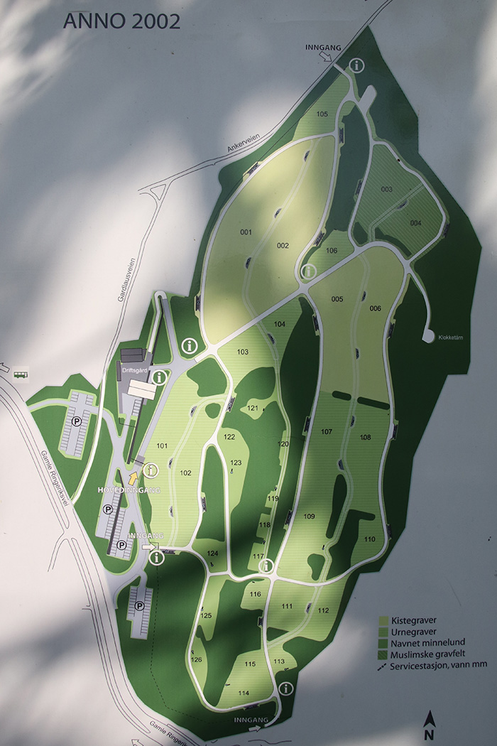 Kart over gravlunden. Kilde: Tavle ved hovedporten
