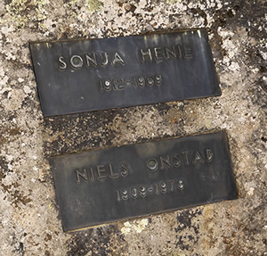 Sonja Henie og Niels Onstad er gravlagt på området. Se bildet ovenfor og Detaljkart.