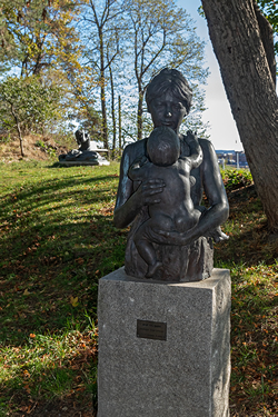 Strandparken har flere skulpturer av Joseph Grimeland. En del nisse- og dyreskulpturer som Homan satte opp er nå borte. Det står igjen en dyrefigur på vaktmesterboligen. Se bilde