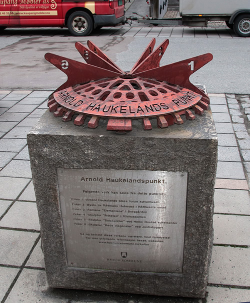 Ved Rådhuset, foran restauranten Caspar, ligger Arnold Haukelandspunkt, som ble satt opp i 2007.