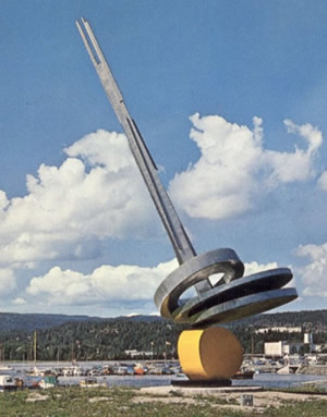 Herfra kan man se Arnold Haukelands plass foran Kulturhuset, fontenen Elementene (1964) i rådhusets borggård, Friheten (rytterstatuen) nord for Rådhuset, Solskulptur (1970) ved Høvikodden og bevegelsesskulpturen Røde diagonaler (1973) foran Tinghuset.
