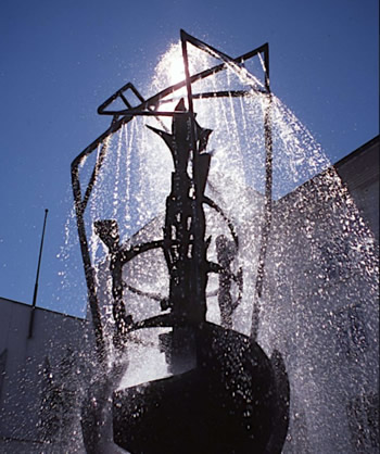 Her kan man se Arnold Haukelands utvikling som kunstner fra den figurative rytterstatuen Friheten, som var hans første offisielle oppdrag, til fontenen Elementene, som var det første eksempelet på abstrakt skulptur i offentlig utsmykning i Norge. Elementene skal vise tre personer som sammen løfter opp et løkkeformet sentrum som sprenges av vannet. Det skal uttrykke liv, fødsel og forvandling.