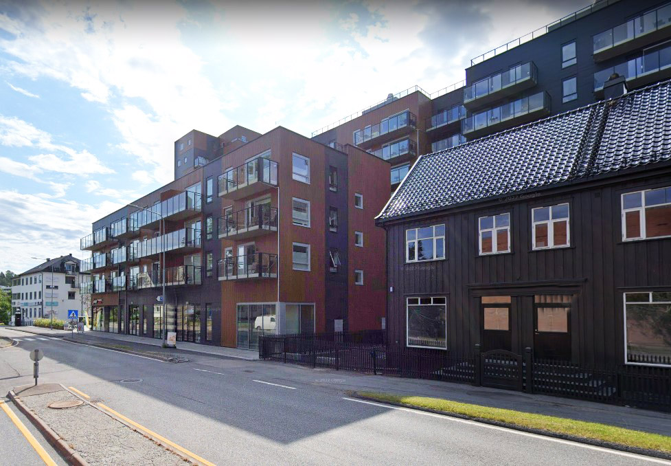 øst − vestretning. Forslaget møtte motstand, fordi det inneholdt et høyhus på 70 meter (20 etasjer), men etter at maksimal byggehøyde ble litt mer enn halvert, ble planene godtatt i 2011. Rivning av Elko-bygget begynte i august 2013. Øverste bilde ovenfor viser den nye bygningen som har kommet opp.