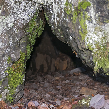 Her ser vi en av gruvene. Inngangen til gruven er ganske liten, men det går an å krype inn.