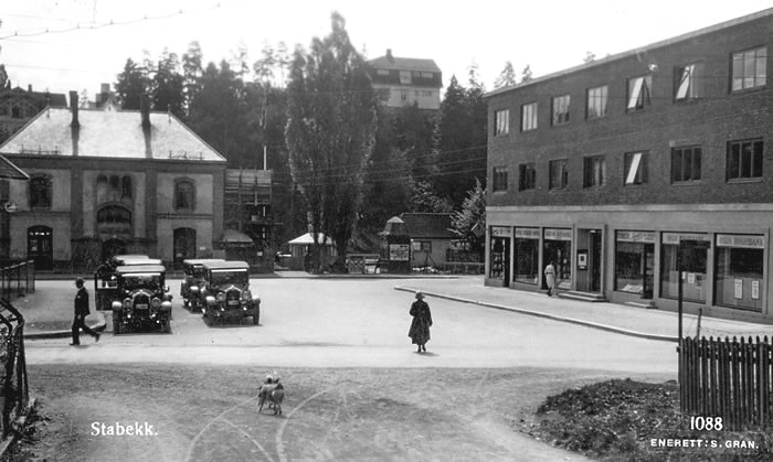 Rett ved telefonkioskene (mot Stabekkhuset) var det oppstillingsplass for drosjer. I en periode var det seks drosjer her, hvorav fire dodger (amerikansk bilmerke).