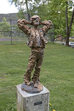 Ved innkjøringen til skolen møter vi skulpturen "Peer Gynt", laget av Nina Sundbye.