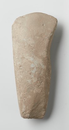 Øks er laget av en grå bergart. Et mindre stykke er slått av på den ene siden, ellers er eksemplaret stort sett godt bevart. Lengden er 14,5 cm, og største bredde 6,1 cm.