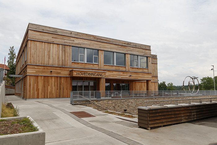 Den gamle skolebygningen ble ombygget. Blant annet er den gamle gymsalen bygget om til kantine og gruppeauditorie.