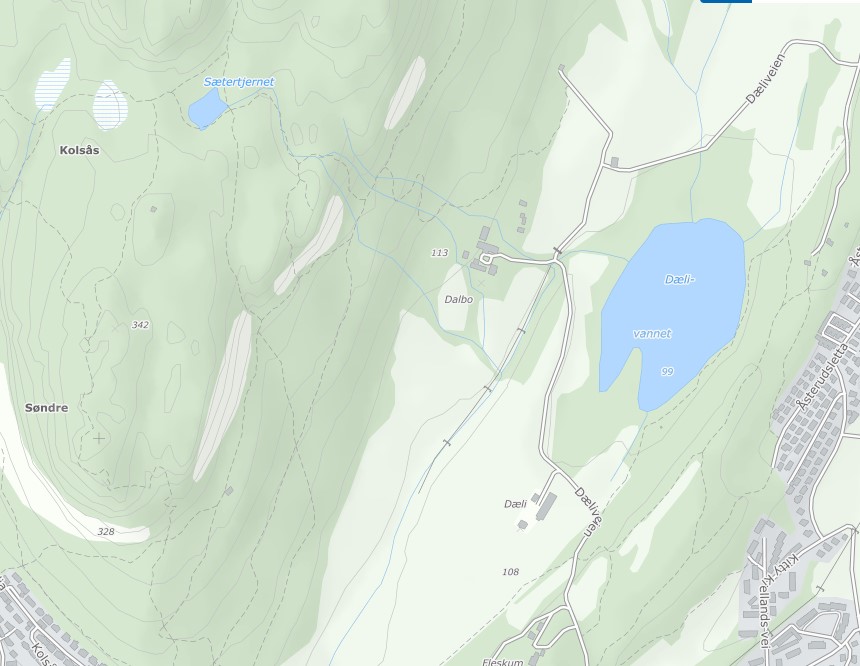 I reguleringsplanen for ny E16 fra Kjørbo til Vøyen var gjenåpning av Dælibekken opp langs Bærumsveien til gangbroen på Rud en viktig del. Bærum kommune ønsket å åpne bekken videre oppover til Rud videregående skole. Statens Vegvesen samarbeidet med kommunen, slik at begge strekninger ble åpnet samtidig. Arbeidet med bekkeåpning og bygging av fisketrapp for sjøørret og laks ble ferdigstilt med beplantning våren 2020. Nå har vegetasjonen kommet på plass, og Dælibekken har fått «satt» seg etter noen flom- og tørkeperioder."