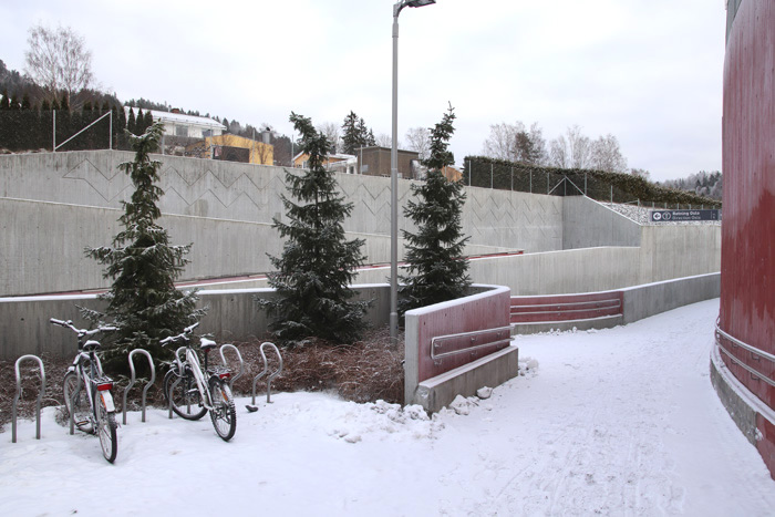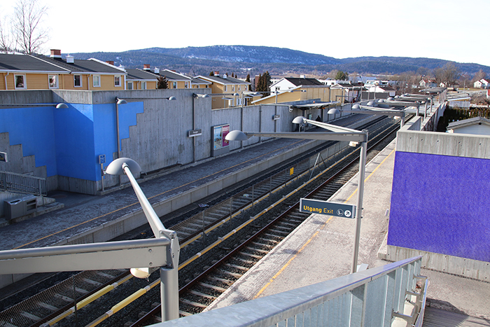 Ovenfor: Her ser vi området rett øst for stasjonen. Sett fra sydvest. Her lå den gamle stasjonen.