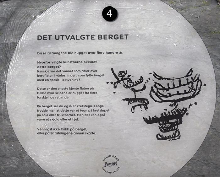De første helleristningene ved Dalbo ble funnet i 1959. Det er registrert en mengde skipsfigurer, kretstegn (sirkler), fotsåler og skålgroper, fordelt på ti felt.