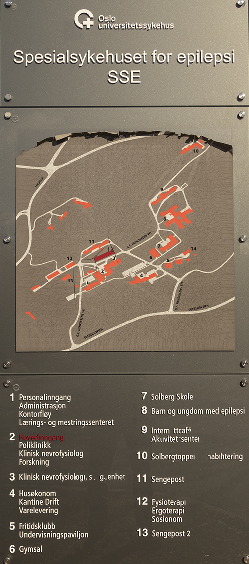 Spesialsykehuset for epilepsi, SSE, tidligere Statens Senter for Epilepsi, ligger i G. F. Henriksens vei.
