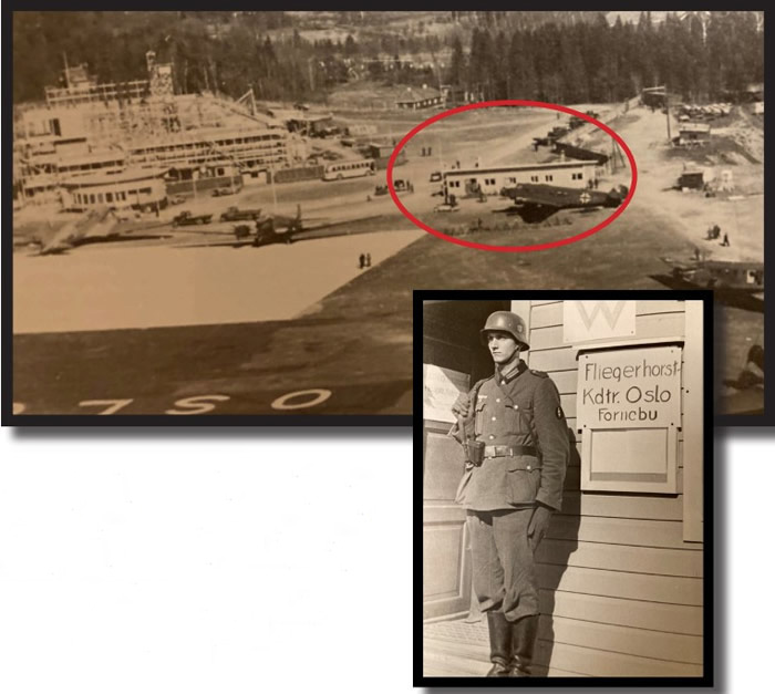 På bildene ovenfor ser vi det området som ofte kalles Gamle Fornebu, og som lå på den nordre delen av Fornebulandet (Fornebu nord). En del av byggearbeidet her ble påbegynt rett før andre verdenskrig (1940−1945), og ble fullført at tyskerne.