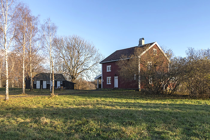 Hovedhuset er en horisontaldelt tomannsbolig med råkjeller og et stort loft. Første etasje av bygningen eksisterte ved en registrering i 1750, mens andre etasje ble bygget i 1932/1933. Uthuset er fra omkring 1920.