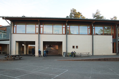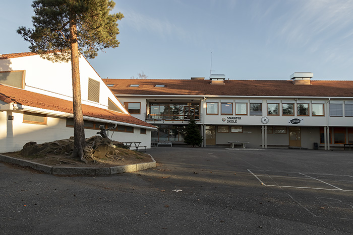 Ovenfor: Snarøya skole 2018. Sett fra øst.