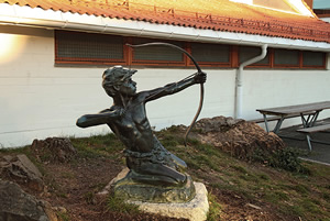 Da skolen starte opp i 1957, forærte komponisten og pianisten Tore Sinding en skulptur av en bueskytter til skolen. Se bilde ovenfor. Sinding hadde selv barn som gikk på skolen. Det ble samlet inn midler slik at man kunne støpe skulpturen i bronse. Skulpturen ble først plassert i skolens hall, men har senere stått flere steder. Noen ødela en arm og buen på skulpturen, og man måtte samle inn penger for å reparere skadene. Skulpturen har nå fått en fremtredende plass og er det første man ser når man kommer til skolen.