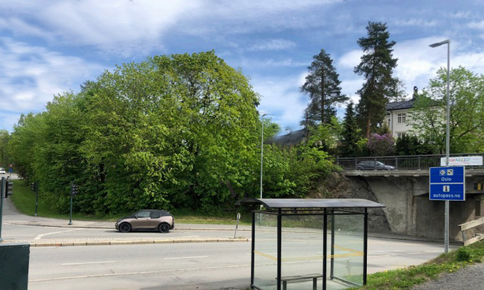 Store forandringer har skjedd rundt Jar Stasjon i forbindelse med omlegging av veier. Det synes ikke å være noen synlige åpninger til bunkeren i dag. I kanten av skogholtet vi ser på øverste bilde, kan man se noe som muligens er spor etter en innsprengt gang.