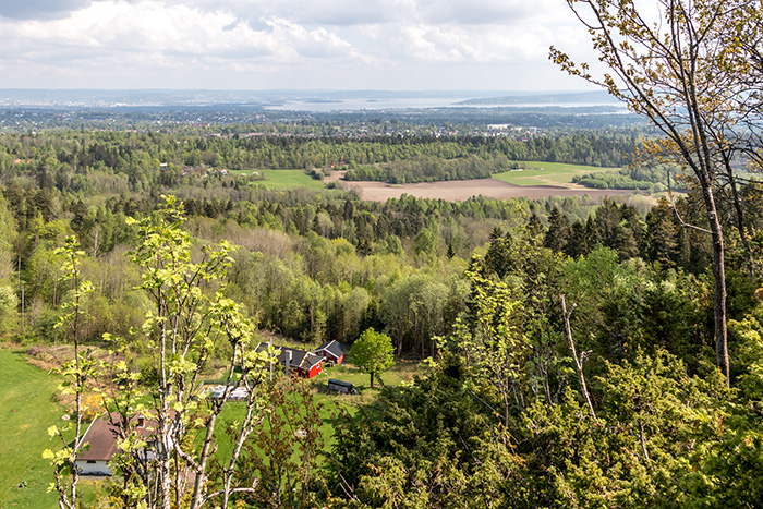 Utsikt fra Tjuvenborgen mot sydøst 2018. Vi ser Knabberud nede til venstre.