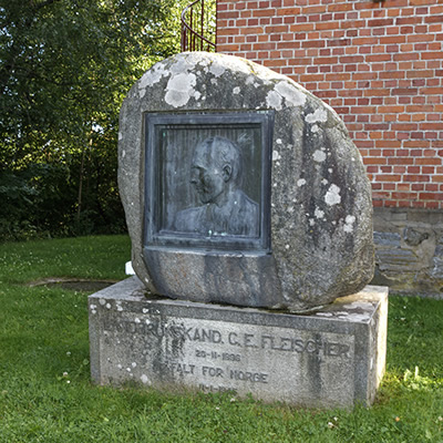På Øverland Vestre står en bauta som forteller at gårdsbestyrer Carl Edwin Fleischer "Falt for Norge