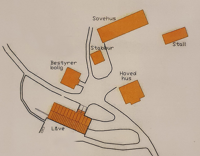 Bak ser vi også Sovehuset med overnattingsplasser. Foto: Knut Erik Skarning