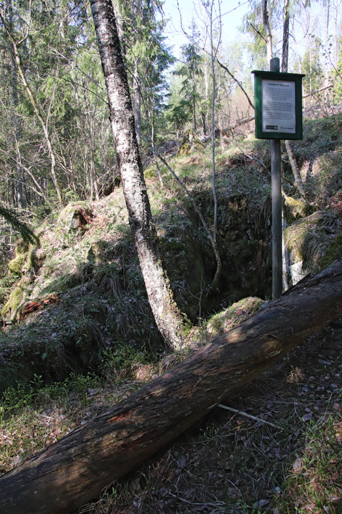 Malmen skulle brukes i masovnen på Bærums Verk, men funnene av hematitt, også kalt jernglimmer og jernglans, var for små. hematitten finnes i centimetertykke ganger, eller årer, som skjærer gjennom den mørke bergarten basalt. Hvis man riper i de svarte små hematittflakene, får man et kirsebærrødt pulver.