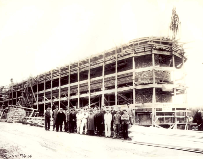 Jarhuset er delvis bygget av murstein fra Johannes kirke som ble revet i 1928. Se mer om dette nederst på siden.