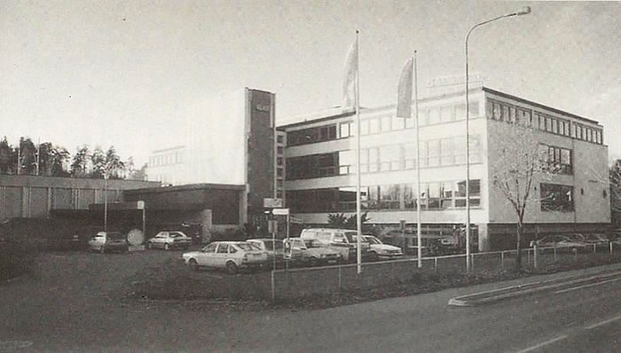 Bygget ble oppført 1960/1961 etter tegninger av de lokale industriarkitektene Franz Wozak og Gunnar Bugge. Bygget ble utvidet med lager østover i 1971.