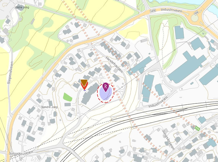 Gravrøysen er avmerket med brun trekant. Kilde: Kulturminnesøk