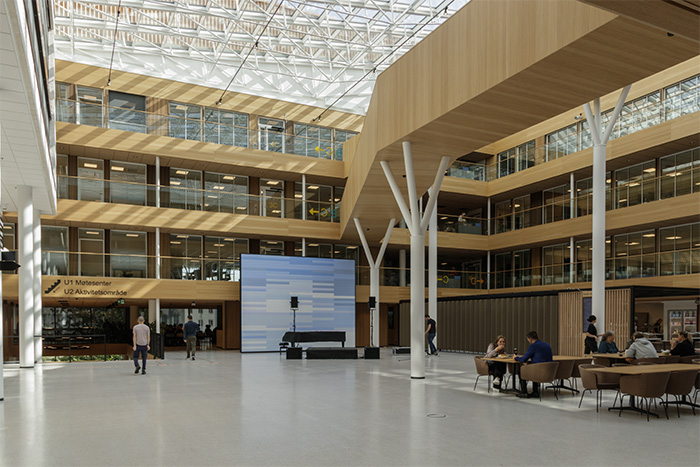 Den 37.000 kvadratmeter store bygningen rommer 1300 arbeidsplasser, mens det var 700 i det gamle bygget.