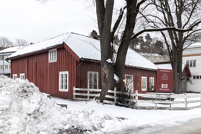 Innskrift fra andre verdenskrig (1940−1945) på veggen på et hus i Malmskrivergården: Leve kång Håkon. Ned med N.S (det nazistiske partiet Nasjonal Samling). Kilde: Bærum bibliotek