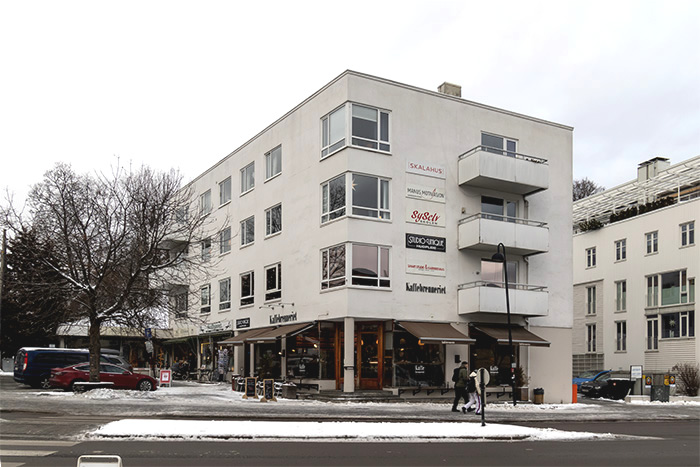 Gården fikk et hypermoderne funksjonalistisk design. Den ble bygget med forretninger i første etasje, legekontorer i andre og boliger i tredje og fjerde etasje. Etter hvert ble det flere kontorer og færre boliger.