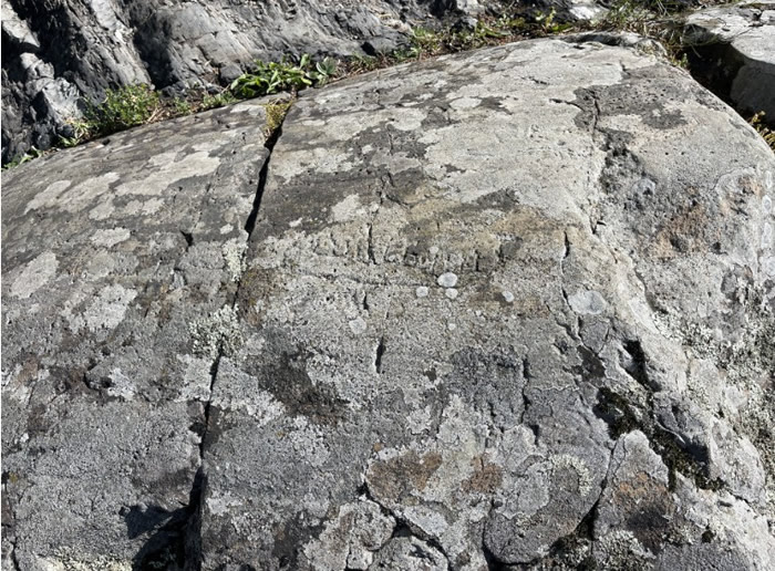 Ristninger i fjellet ved badebukta