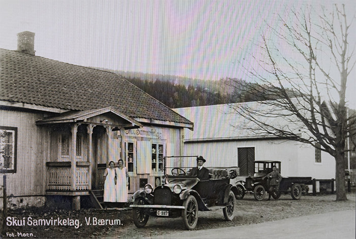 Skui Samvirkelag ble etablert i 1920 i leide lokaler, etter initiativ fra Bærum Småbrukerlags innkjøpslag for kunstgjødsel, torvstrø, kraftfor m.m. Tre år senere kjøpte laget eiendommen der de holdt til i bygningen vi ser på de nederste bildene. Folk kalte forretningen bare for Tysland (Tyskland).