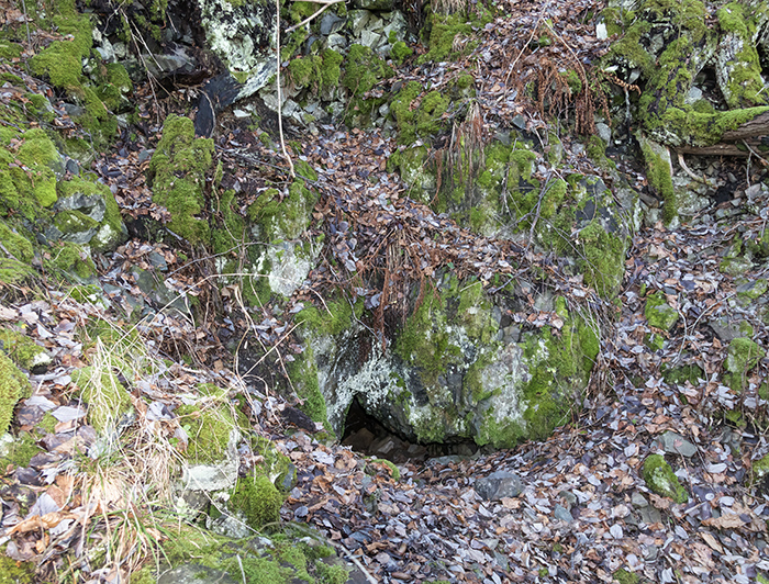 Her ser vi en av gruvene. Inngangen til gruven er ganske liten, men det går an å krype inn.