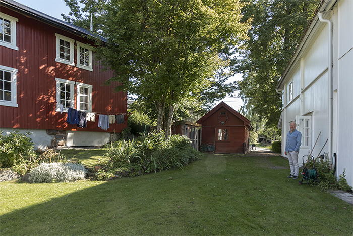 Tunet på Lagerud 2020. Vi ser også eieren Petter Munthe-Kaas. Sett fra nordvest.