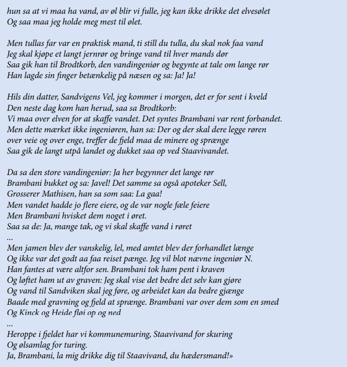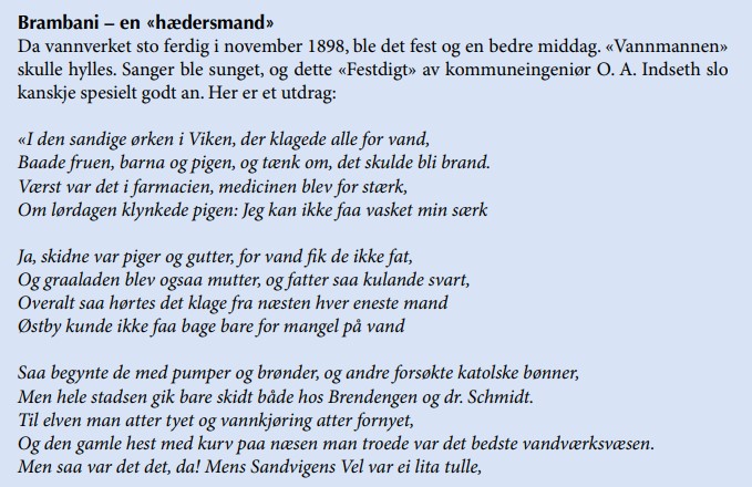 Det ble i 1897, etter initiativ fra Caspar Donato Brambani, bygget en vannledning fra Stovivannet ned til bedriftene han hadde i Sandvika.