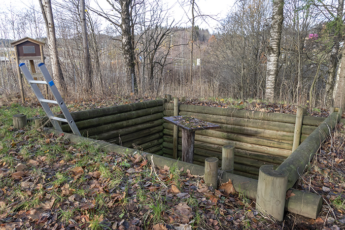 Det står skilt ved Isiveien der man kan gå inn til ulvestuen.
