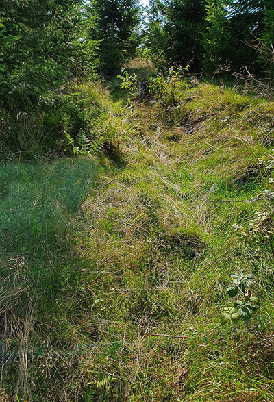 Gupu (Øvre Gupu) og Furuholmen for turfolk som ikke følger den store kjøreveien. Etter litt over 100 meters gange kan man ta av et enda eldre veifar, en hulvei, på venstre side av veien/stien. Se nest øverste kart og Bilde 4. Denne aller eldste Gamle Gupuvei fører til Nedre Gupu og videre til Gupu (Øvre Gupu), der den kommer frem på østsiden av jordene. Stien er avmerket som en hovedsti på et kart fra 1928. Nye stier, og gjengroing av gamle, kan gjøre det vanskelig å følge de gamle veifarene i dag. Se mer detaljert beskrivelse av hulveien lengre nede på siden.