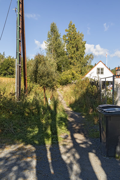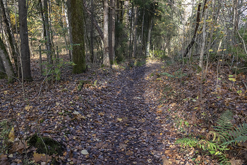 Til høyre ser vi bilde fra der den fredede delen av Gamle Jarenvei starter ved Butterudveien, helt nederst på kartet ovenfor.